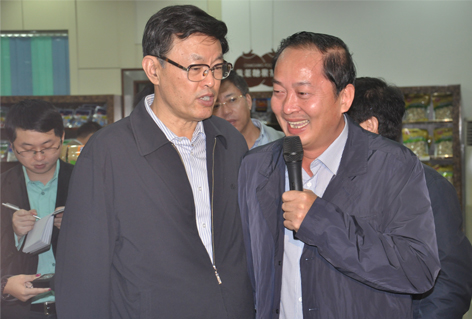 11月28日上午,冒著寒綿冬雨,踩著泥濘大地,省長蔣定之帶領參加全省品牌農業(yè)發(fā)展推進大會的代表考察了我司文昌廠區(qū),公司黃春光董事長等相關領導陪同介紹。